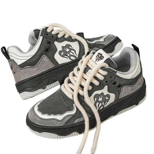 Vintage Wine Red Graffiti Skate Shoes for Men